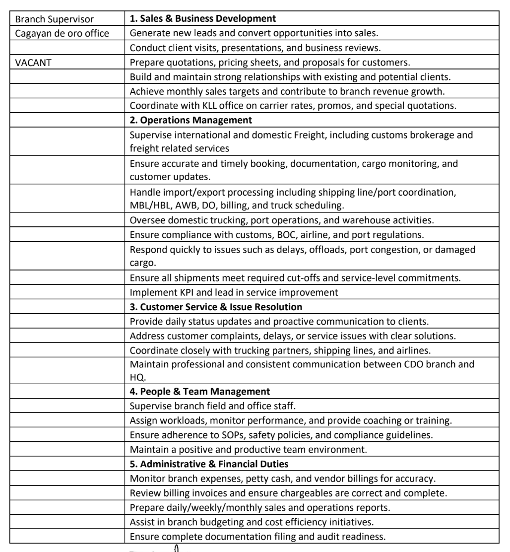 • Work Experience/s: At least three (3) to four (4) years’ experience as a Sales Manager, preferably in a similar environment.